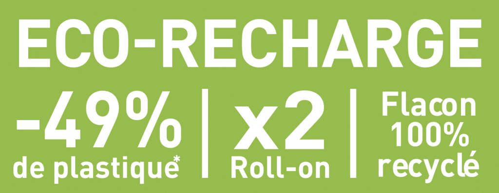 L’achat d’une recharge permet d’économiser 49% de plastique par rapport à l’achat de 2 nouveaux déodorants roll-on.